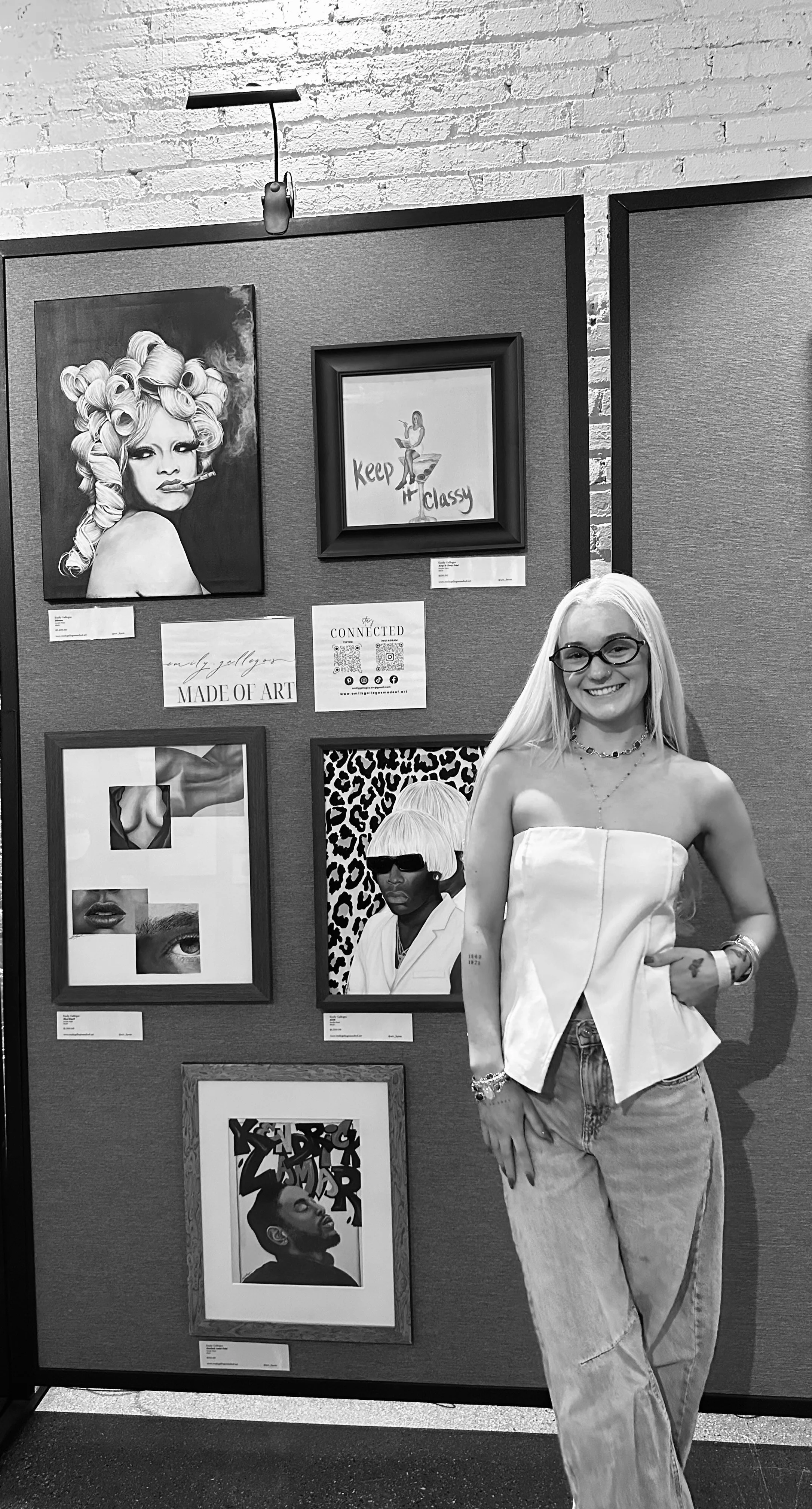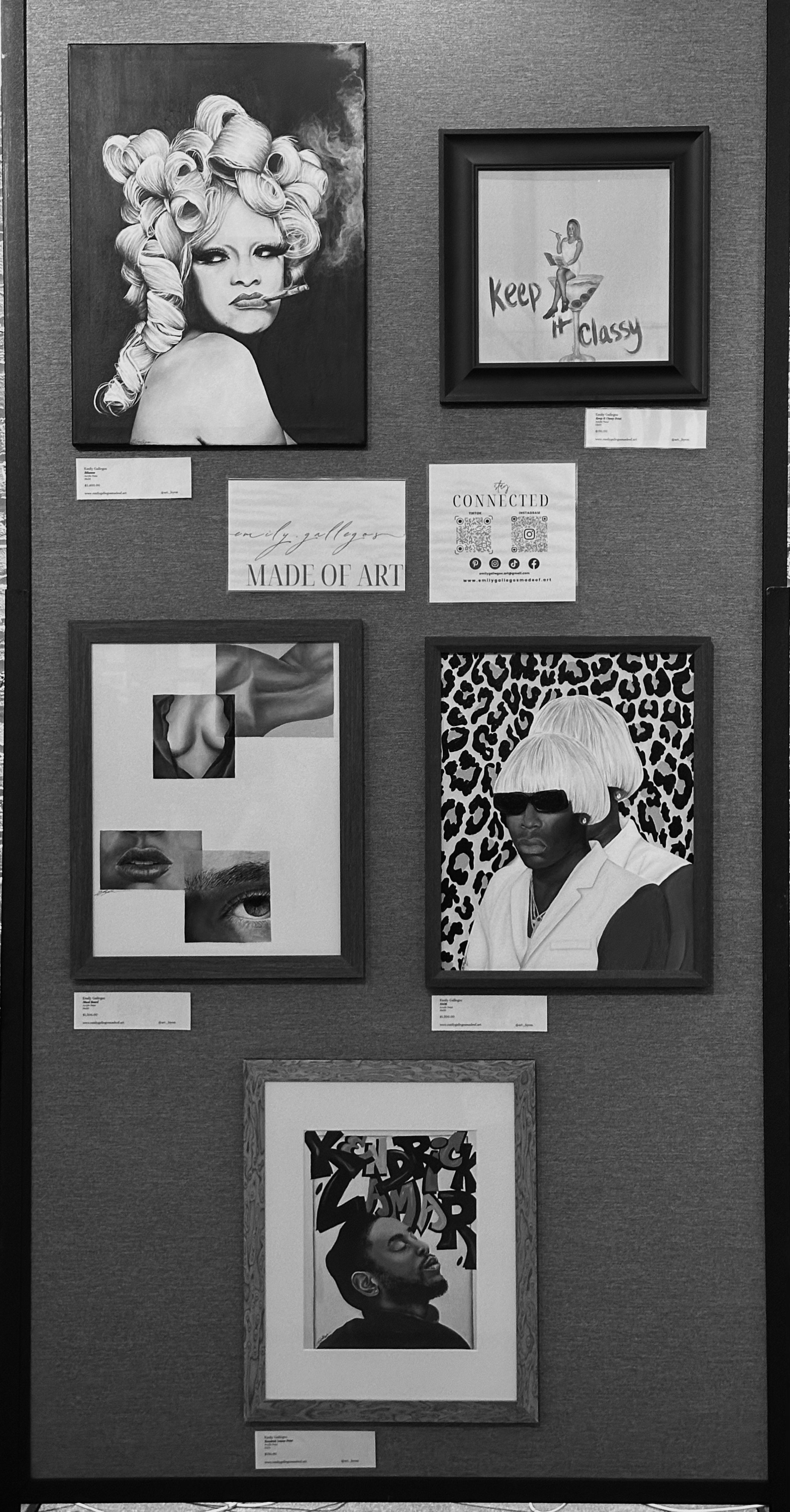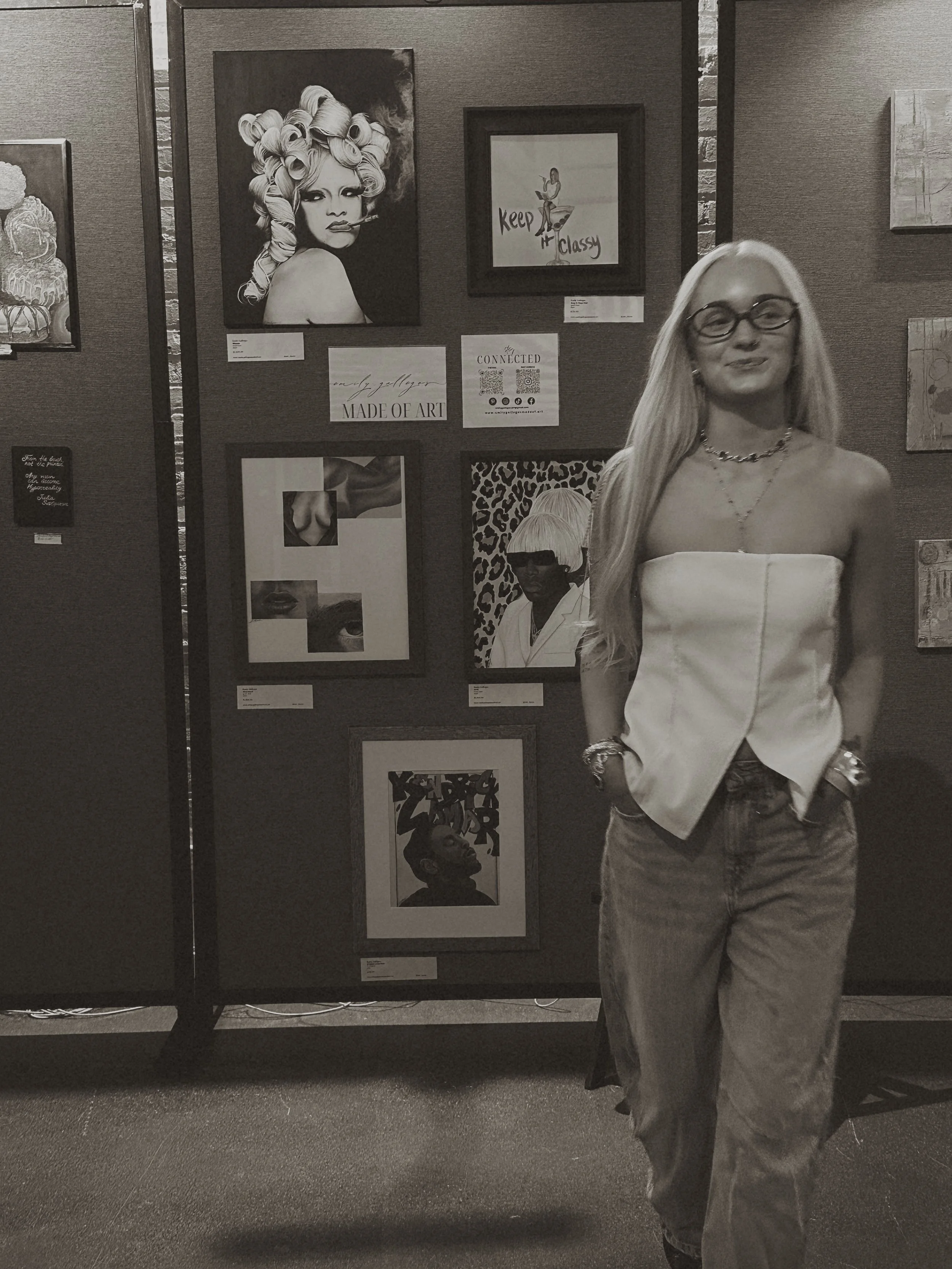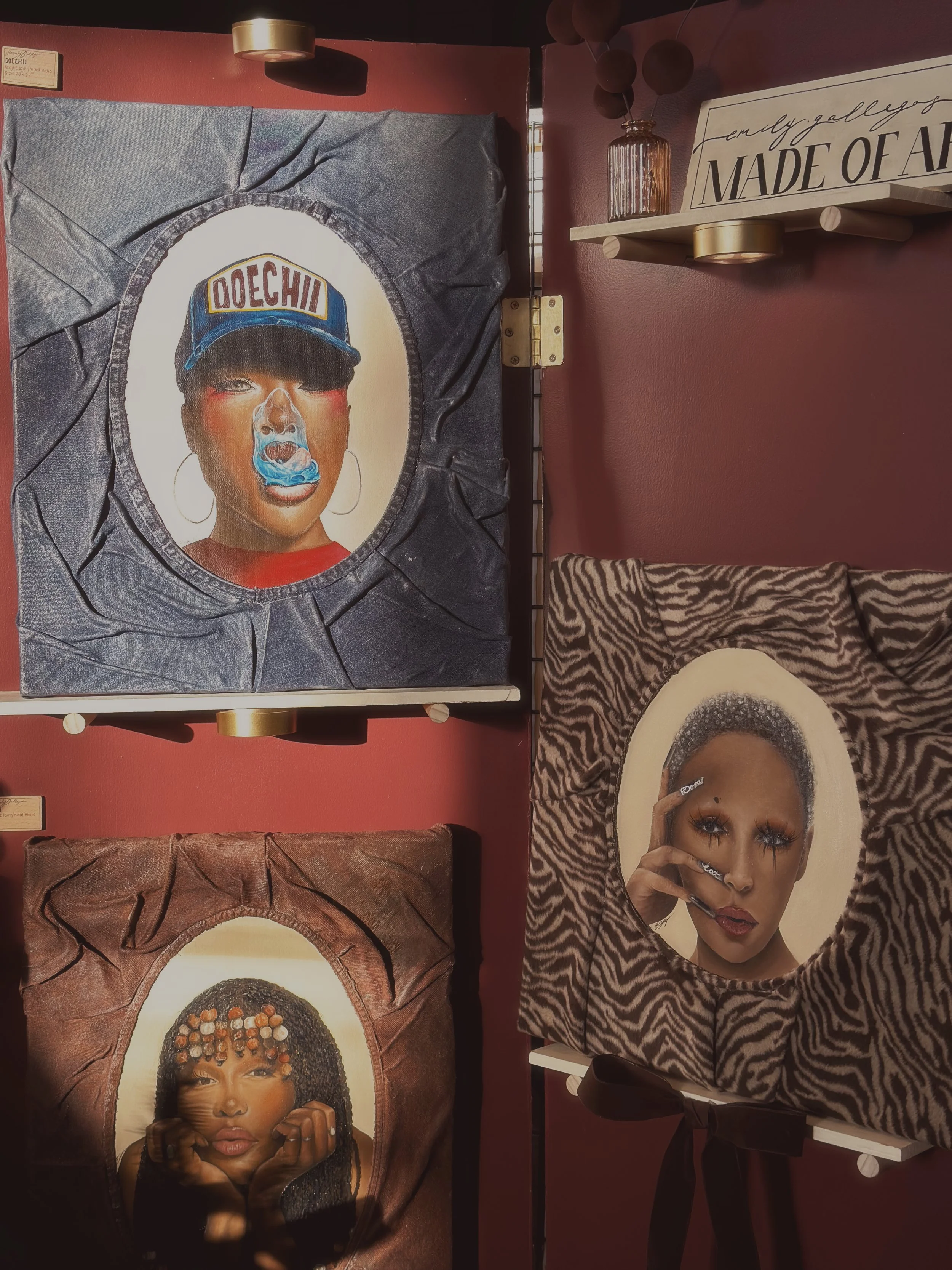 I started painting around 2016 but didn’t develop my art style until 2022. I find my painting style to be a blend of contemporary figurative mixed media with pop surrealist and fashion-influenced elements. Every piece is uniquely created by me!